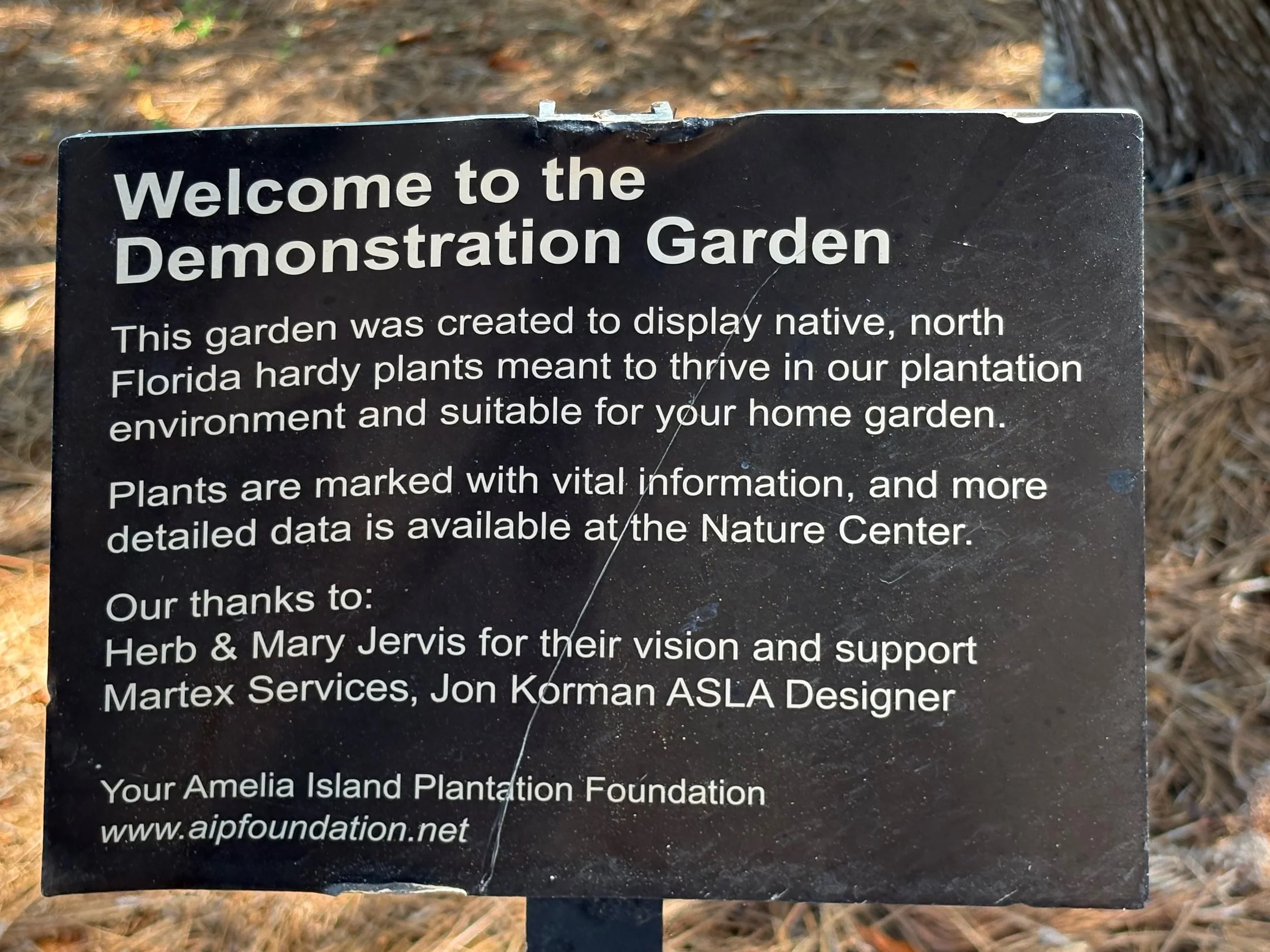 The Demonstration Garden is located on the Aury Island parcel close to the main entrance to the Plantation. It is designed to showcase the different trees and plants that abound on our property. The Amelia Island Foundation sponsors it.