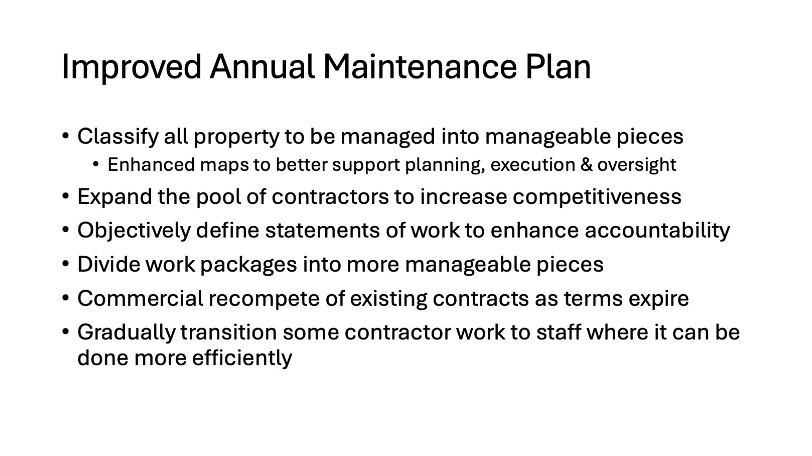 Continued maintenance, special projects to renew five high priority repairs